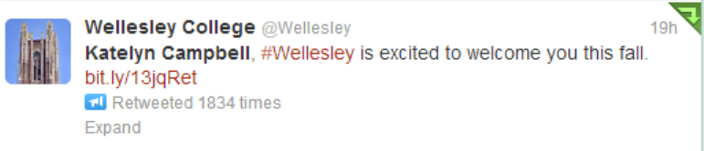 #Wellesley is excited to welcome you this fall. http://bit.ly/13jqRet