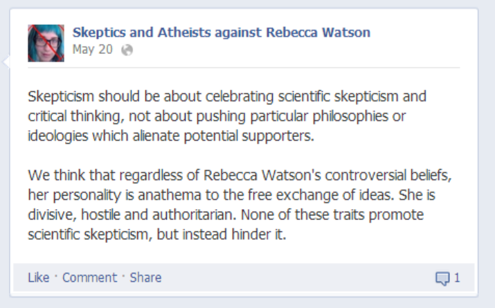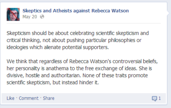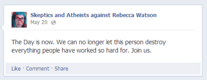 There’s a horrible Facebook page called Skeptics and Atheists against Rebecca Watson. It’s public, so you can look at it if you’re on Facebook.