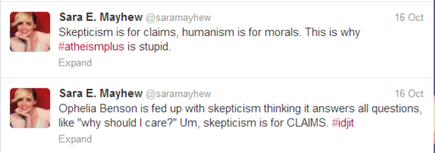 Skepticism is for claims, humanism is for morals. This is why #atheismplus is stupid.