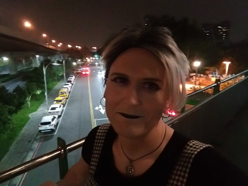 A small set of my Goth selfies. First, a month or so ago, on an overpass.