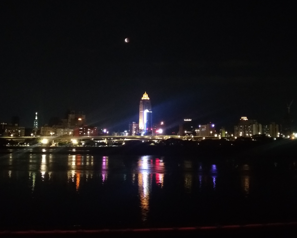 On May 26 around 19:00 local time (11:00 UTC), there was a lunar eclipse. Unlike last June’s solar eclipse where I had to travel 200km to see it, this time I only had to walk 500m to the riverside park and cross the levee to reduce light pollution. There were quite a few other shutterbugs out taking their own photos.