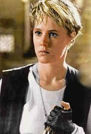 Kate Jackson- Played by blonde haired woman with the edgy, modern reverse bob hair style.. She is the smartest angel, which is demonstrated by her shorter, less feminine hair.