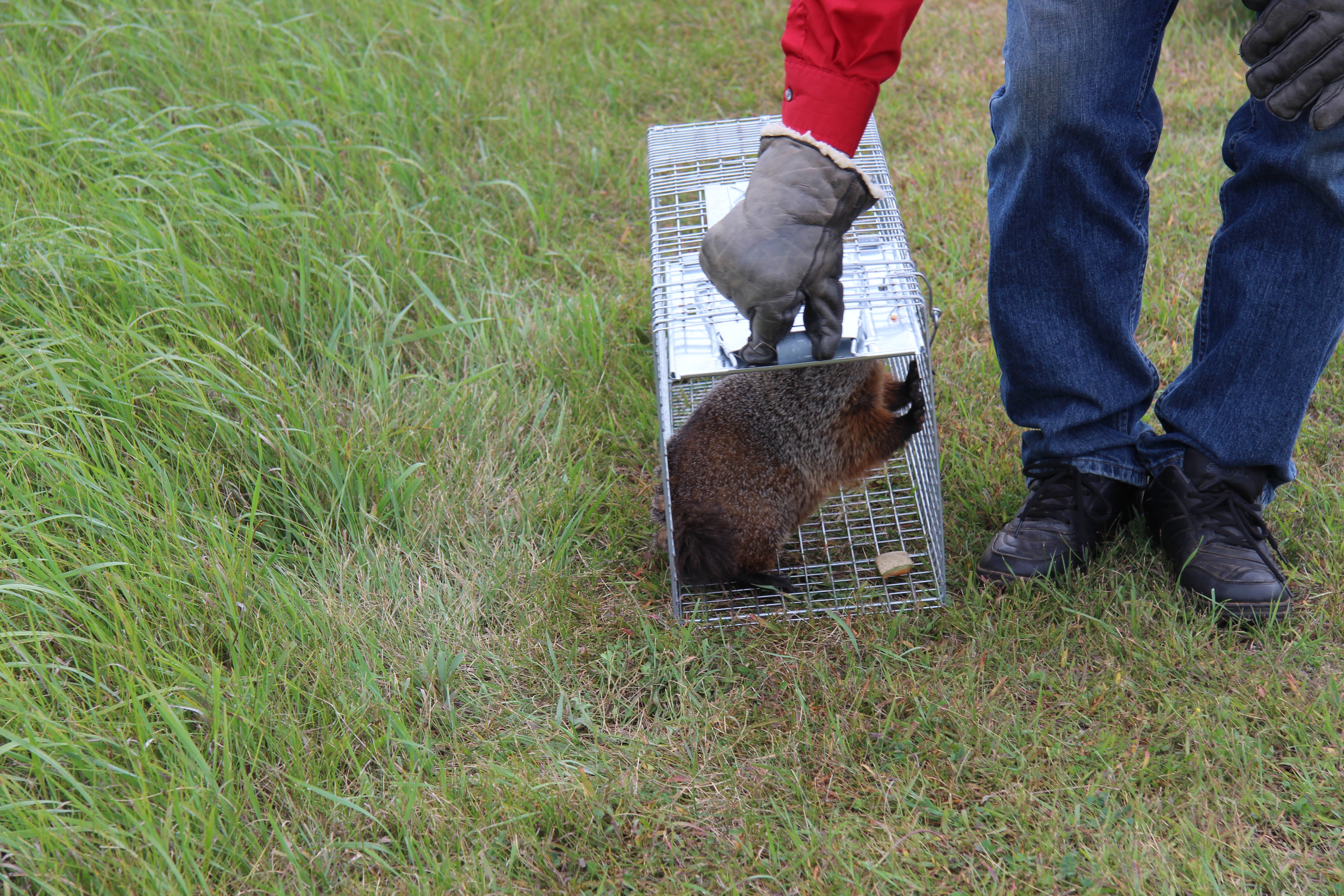 I was trapping and releasing for a while, but as carlie mentioned above, I had a couple of run-ins with trapped skunks that put an end to that. The skunks are actually pretty calm and you’ve really got to piss them off to get sprayed. I just lifted the bail on the trap with a rake and they just wandered off, to be anywhere but near me.