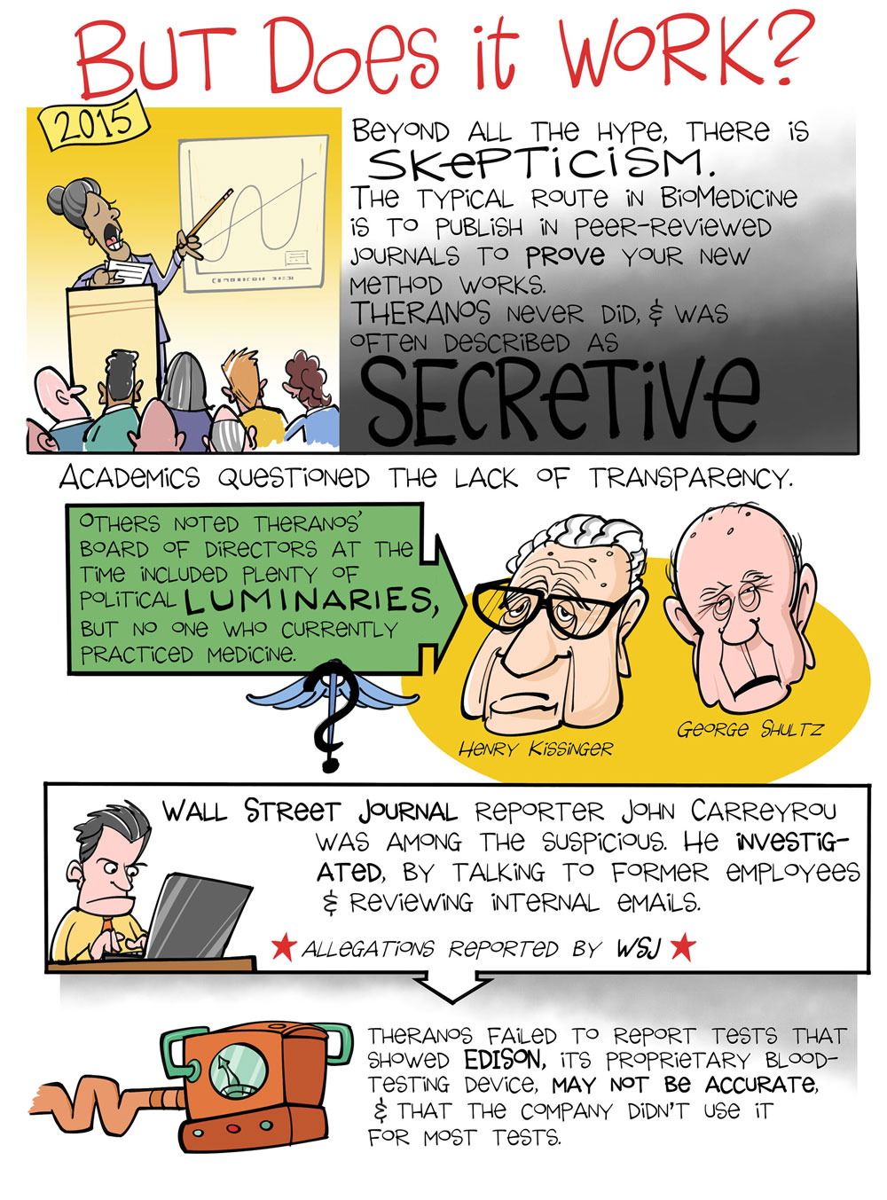If you’ve wondered about that spectacular flameout by Theranos, the blood testing company, but didn’t want to read all those articles all over the place, the story is now available in cartoon form.