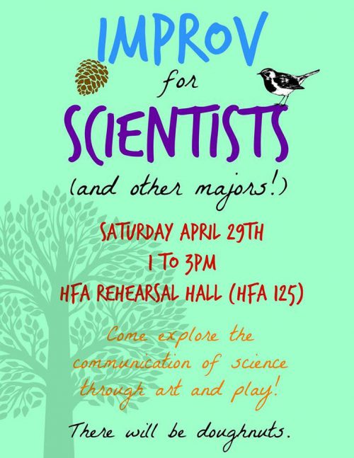 Botanical Wednesday: I am not fooled » « Good noise You had me at doughnuts “Improv for Scientists” — that looks useful. I guess I’ll have to go. 29 April, early afternoon, here on the UMM campus. Doughnuts are just a bonus. Share this:PrintEmailShare on TumblrTweet Botanical Wednesday: I am not fooled » « Good noise