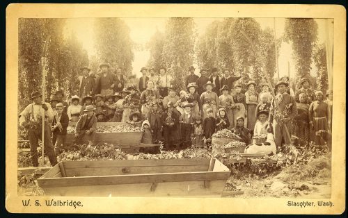 My mother has inherited several hop harvest pictures like this one, taken a bit further south around Orting, WA.