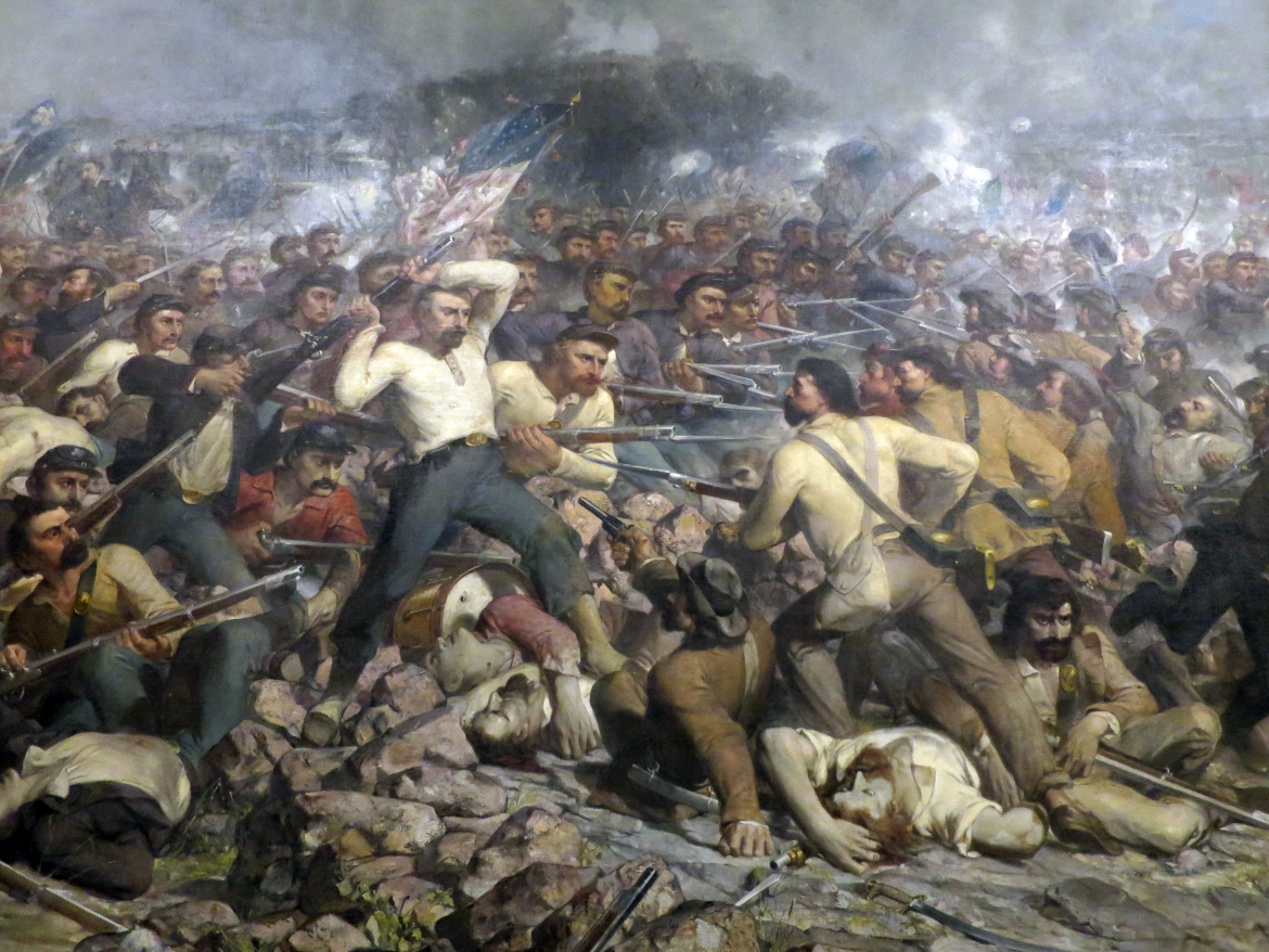 At about 2pm on 3 July 1863, almost 13,000 Confederate soldiers made a desperate and foolish attack on the American lines at the battle of Gettysburg — they were repulsed, and half of their men were casualties. That was called the high water mark of the war with the South, and it really was the end.