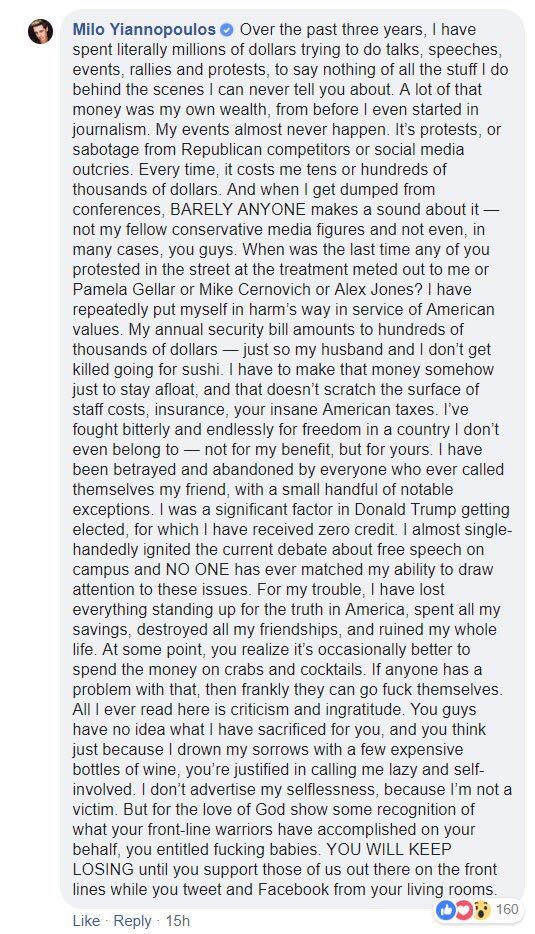Also, maybe you shouldn’t have endorsed pedophilia Milo.