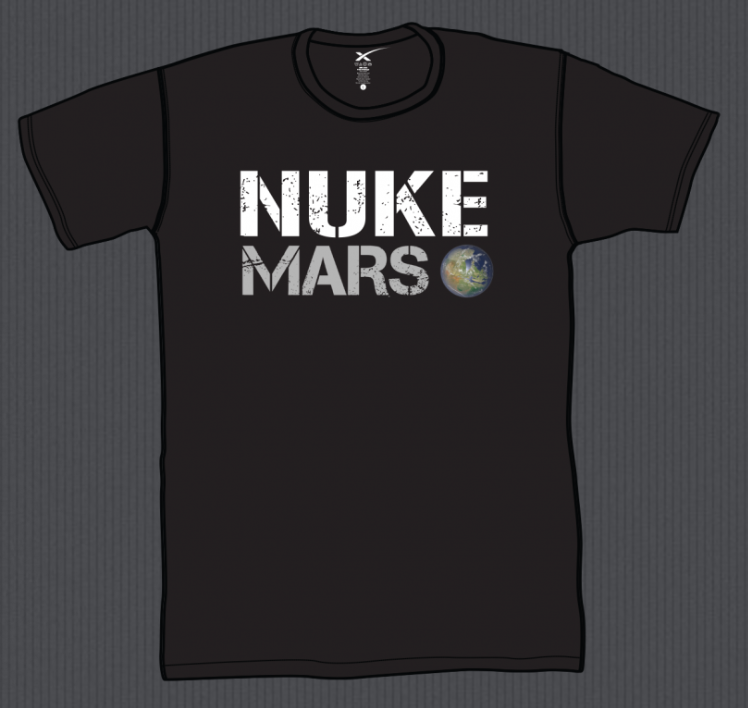 “Nuke Mars refers to a continuous stream of very low fallout nuclear fusion explosions above the atmosphere to create artificial suns. Much like our sun, this would not cause Mars to become radioactive,” the entrepreneur [is “entrepreneur” a synonym for “loon” now?] tweeted yesterday (Aug. 20).
