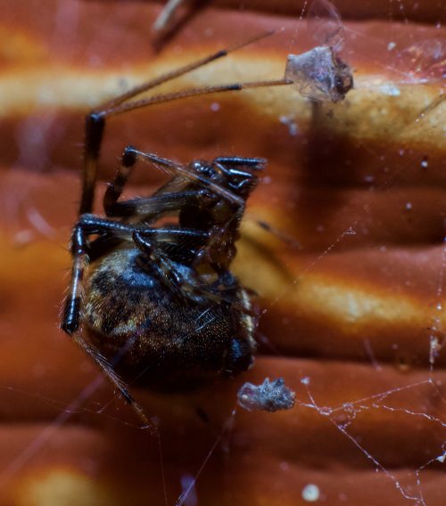 Another thing I’m seeing, purely subjectively and not at all quantitatively, is that the spiders I’m finding in the fall are generally darker than the ones I saw earlier this summer. Now I’m wondering if pigmentation might be partly a response to the environment…something else to look into.