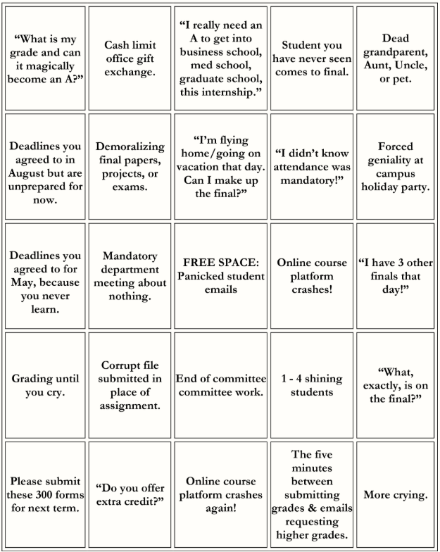 Huh. Despite having ticked off more than half of the boxes, I didn’t manage to get a single line of five on this bingo card.