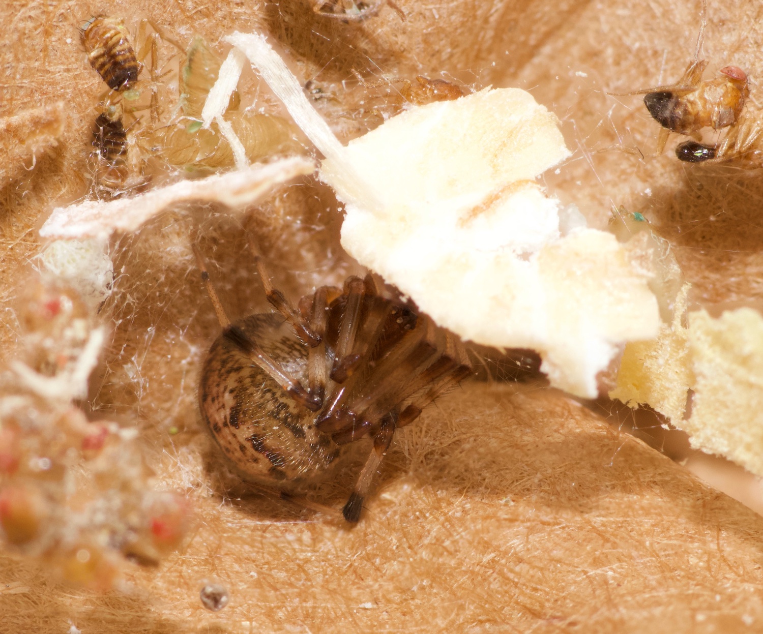 A while back, I told you I had a slight problem: I probably had two nearly indistinguishable Parasteatoda species in my colony, P. tepidariorum and P. tabulata. The way to tell them apart is by close examination of their genitals, or by dissection, and a) I don’t have the skill to do that, and b) I’m trying to maintain a live, breeding colony, so taking individuals apart to figure out their sex is off the table.