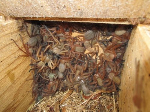 Unfortunately, there’s a shortage of Huntsman spiders here in Minnesota. We’ve got lots of Pholcus, though. I’m thinking of going down into the basement and scooping up a swarm of cellar spiders, putting them in a gift-wrapped box with a ribbon, and mailing them off to the grandkids.