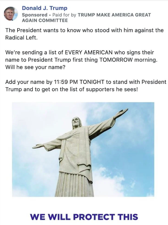 It’s not from Trump’s Twitter, and probably not from him directly. The ad was paid by: “the Trump Make America Great Again Committee, a joint fundraising account for the Trump campaign and the Republican National Committee,” (article that PZ linked to)