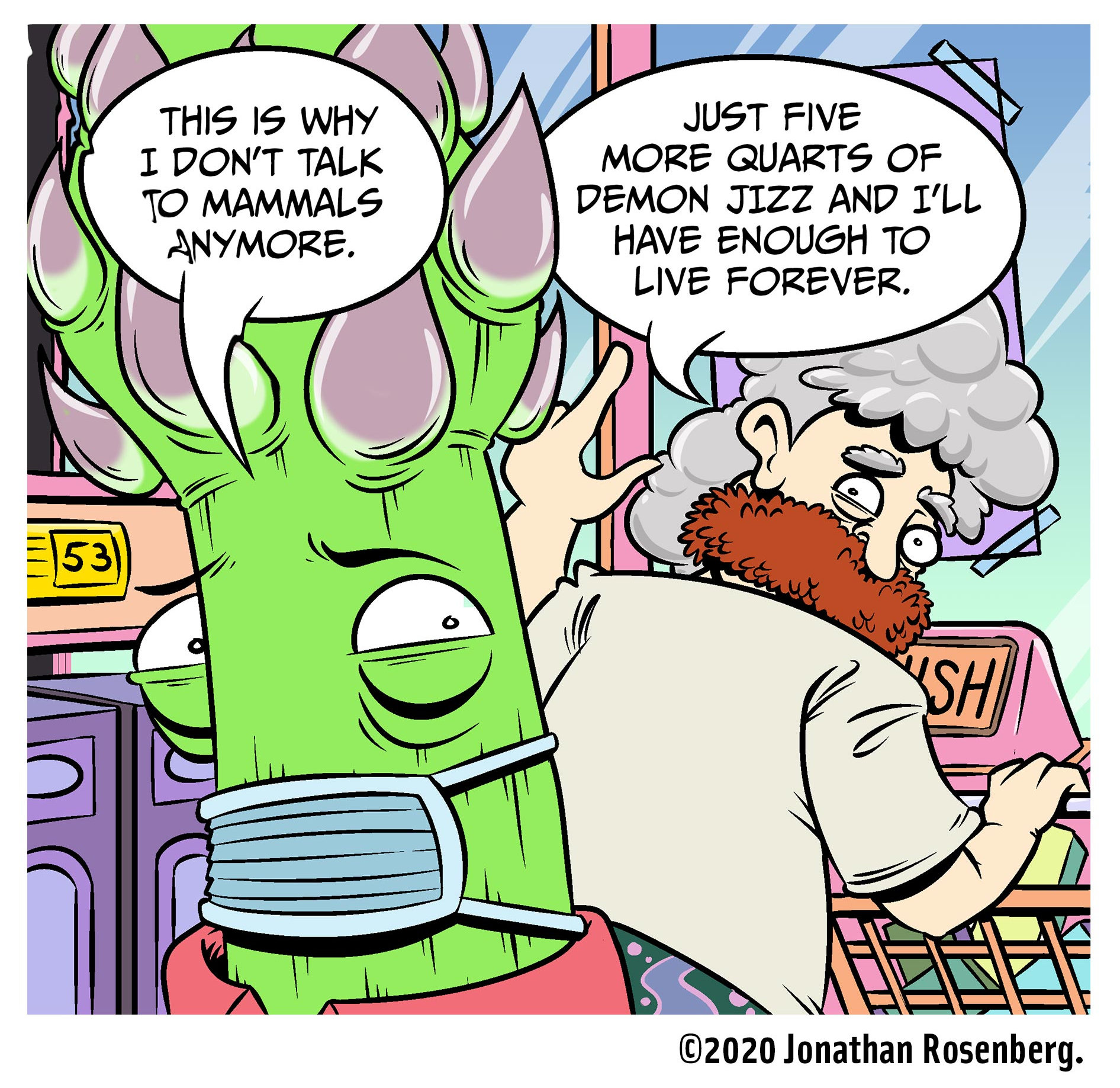 It’s also why I avoid grocery stores. Jon Rosenberg recounts a perfectly ordinary encounter at the supermarket.
