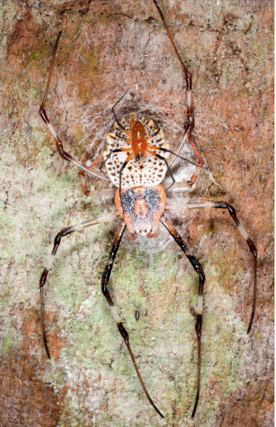 Darwin’s bark spider (Caerostris darwini) has many claims to fame: the largest webs, the strongest silk and several strategies for surviving sex. This is the only spider known to indulge in oral sex. Male spiders also go in for mate binding, a gentle form of bondage with silk that helps to reduce female aggression.