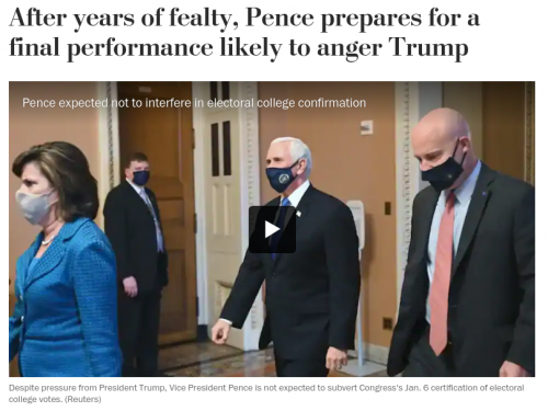 Pence’s performance Wednesday in the Senate chamber will serve as a fitting coda for a vice president who — through a combination of deference, obsequiousness and studied self-effacement — has made navigating the whims and loyalty requirements of his mercurial boss a full-time pursuit.