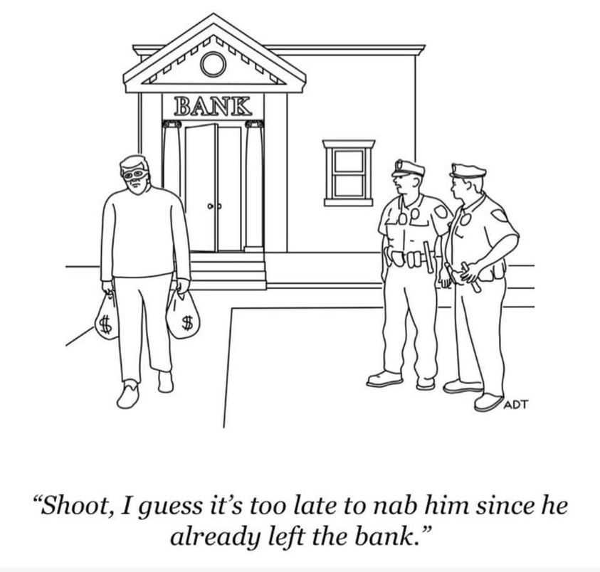 Also: “If he says he’s not robbing a bank, then he’s not robbing a bank. Must’ve been doing something else.”