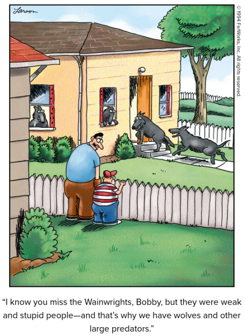 I will leave open how best to organize large societies, because I have no idea. My gut says I am personally a lot happier under neoliberal, somewhat democratic government than I could possibly be in a small tribal unit. A lot of that may come from a position of privilege. The panhandlers I used to walk by in Baltimore or San Francisco would probably do better in a different kind of society, possibly one that is smaller and more caring, or possibly a large one with a decent social safety net.