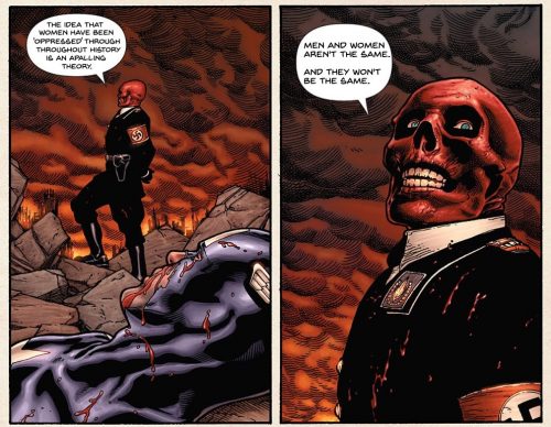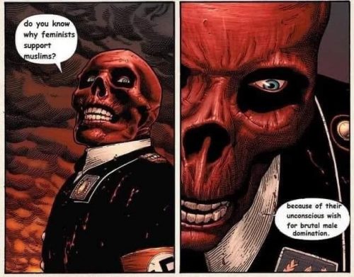 Facebook is probably worse than YouTube, since that’s where people gather to overthrow the government and tell each other racist things, but at least it does have the Red Skull Core. That’s a Facebook group where they make memes by putting Jordan Peterson’s actual words into word balloons coming out of the mouth of that Nazi arch-villain, the Red Skull. It’s amazing how well they work when put into that context. Those guys are always complaining about being taken out of context, right?