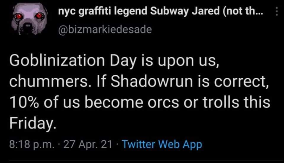 Day’s not over yet! It could still happen. insert repeated joke about how trolls and orcs are already here