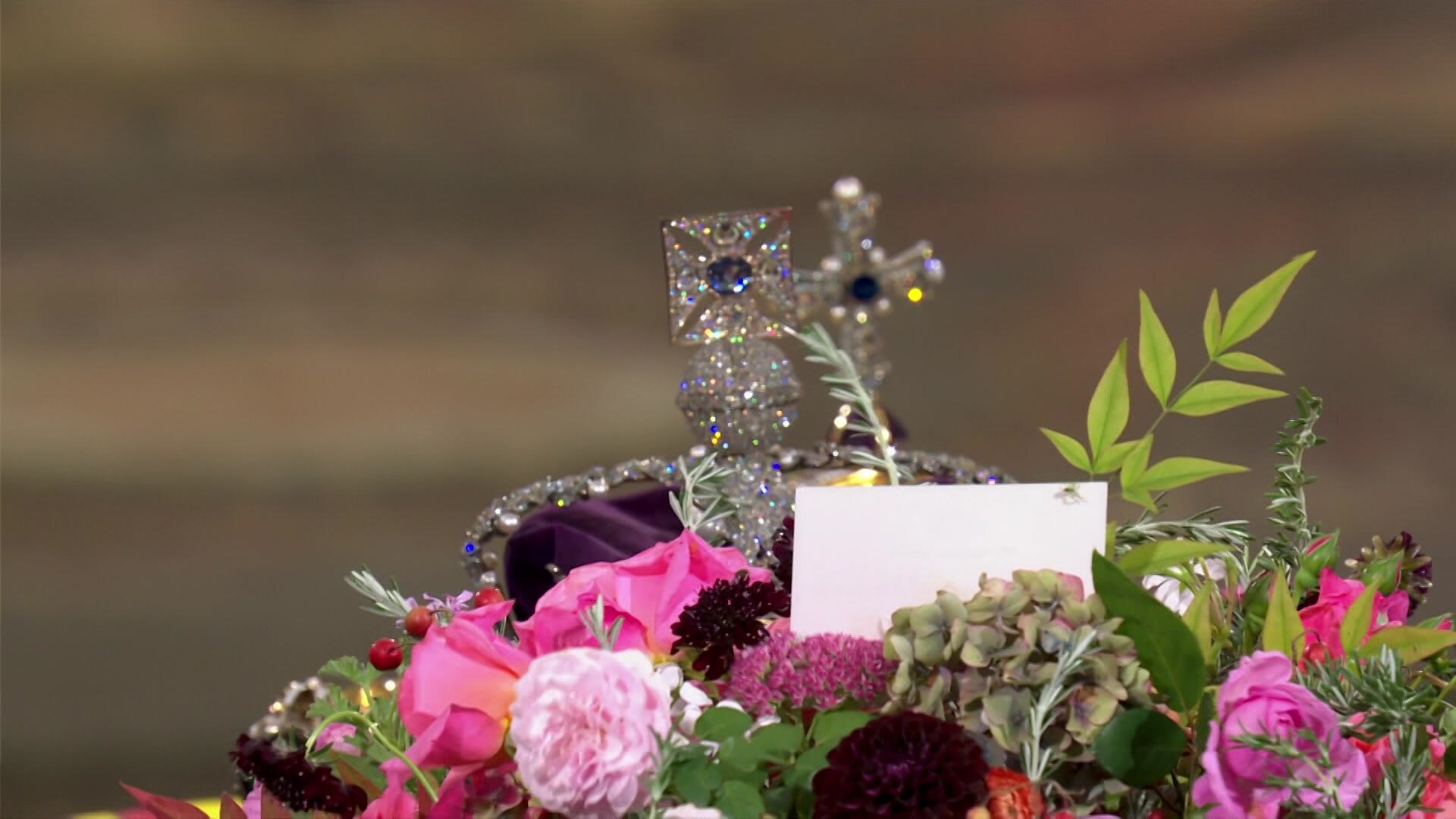Didn’t catch the spider, but a close up of the box being carried into Windsor chapel revealed a wilted sprig of thyme that my eagle-eyed partner spotted. She’s a plant person through-and-through.