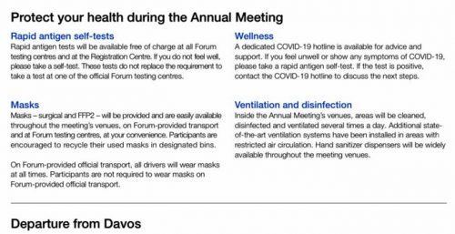 Since there are some government officials at Davos, the rich demand these precautions to keep from being infected by government cooties. Well, except for the oligarchs who actually are de facto government officials.