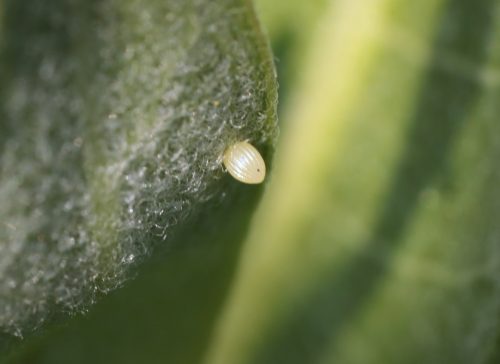 Definitely a monarch egg. It has the right shape, surface, color, everything. And, of course, it’s laid on a milkweed plant. Good to see that some of them are surviving even in the upper Mid-west.