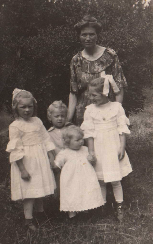 That’s Nellie in the back. The child on the left is my grandmother, Nora. Next to her is Claude, and then Muriel, and Arlene in front. The father of that brood was named Clarence.