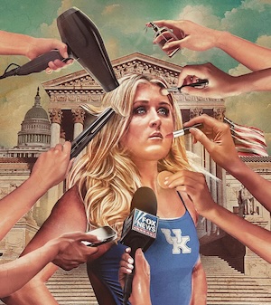 The Daily Wire article catapulted her into the feverish world of right-wing media. On March 28, 10 days after her race with Thomas, she appeared on the Clay Travis & Buck Sexton Show; on April 1, Tennessee Sen. Marsha Blackburn hosted Gaines on her podcast; on April 6 she was a guest on Tucker Carlson Tonight, where Carlson lauded her for “bravery.” “I’m just fortunate enough to where I have such an amazing support system at the University of Kentucky, whether that be from the athletic director all the way down to my head coach, Lars Jorgensen,” she told him.
