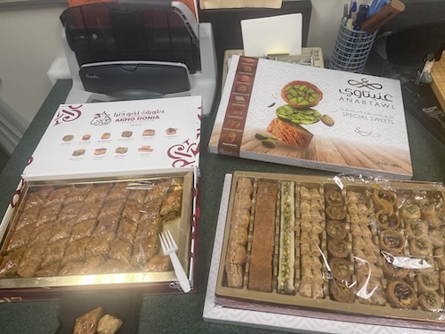 One of our colleagues came back from their break in Jordan with treats for us all.