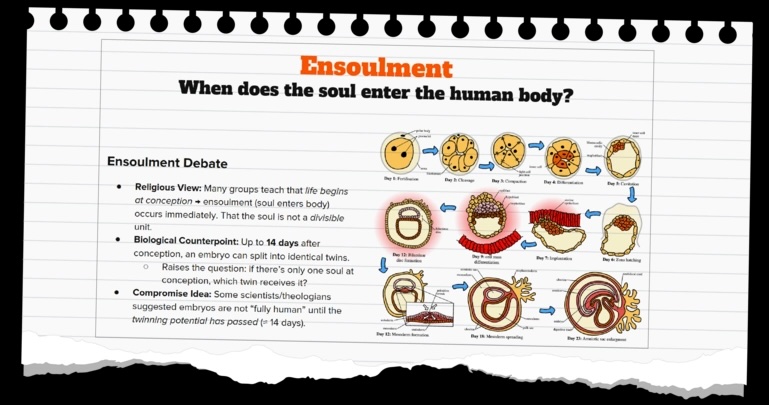 From that Ensoulment image, “Raises the question: if there’s only one soul at conception, which twin receives it?”