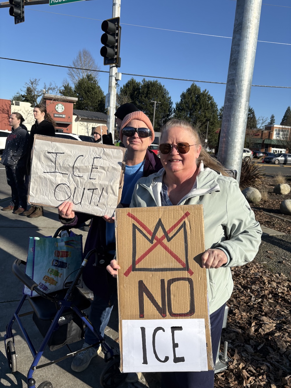 And not just Minnesotans: here are my sisters in the balmy Pacific Northwest (and my brother, who isn’t in the photo), declaring what they think in solidarity with the entire nation.