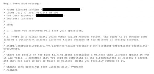 Apparently, Brockman had been making up excuses for Epstein to his clients, and then those clients were echoing those excuses to justify their own ugly behavior. I have no idea what Dawkins thought Brockman could do to help. It was just an incestuous little clique.