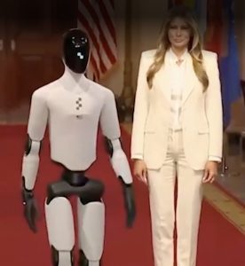 I’ll wager that there was an actual human remote controlling the robot, but even if I’m wrong about that, it is still more human the Melania. I’ve always thought she looks like a cyborg.