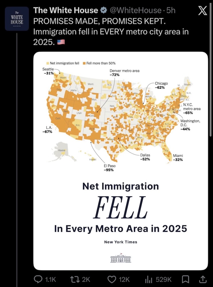 The White House (I think that means Steven Miller) is weirdly proud of the fact that they’ve turned the nation into a chaotic hellhole that no one wants to live in any more.