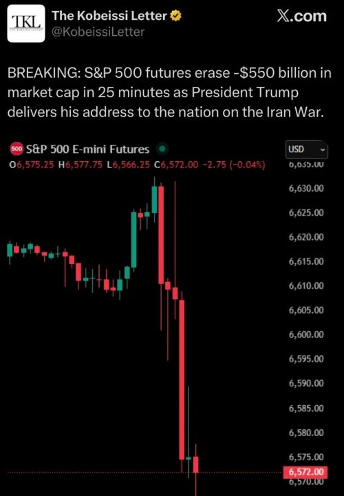 I spent two or three times as long watching Artemis II take off yesterday. But I was content to just catch a few clips of this mess and a summary. Sure feels like the right call. He won’t have anything useful to say until after he figures out how to blame the whole thing on someone else. Before then it’ll just be one lie after another to prop up his ego as he tries to pretend he’s not an abject failure. Impoverishing and killing as many people as possible along the way.