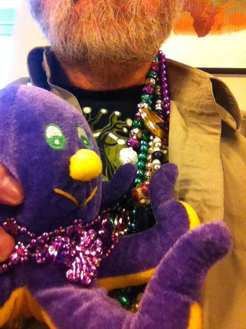 I received a package from New Orleans the other day (thanks, O Sender!) which contained this happy purple octopus and an assortment of bead necklaces.