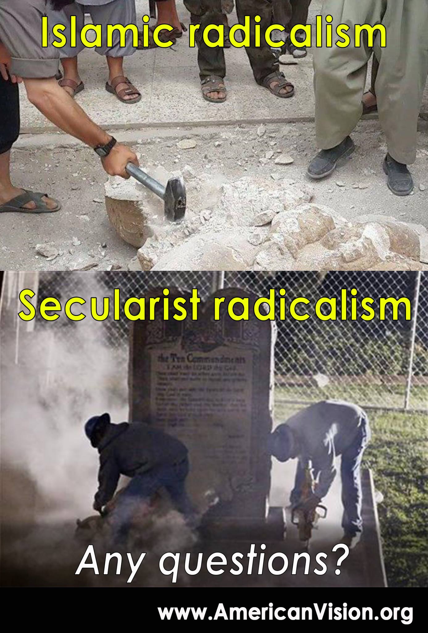 Those secular “radicals” are asking that we not regard a movie promo from 1956 — that’s right, most of these monuments were sent out to advertise a movie by Cecil B. DeMille — as appropriate civic displays, and are asking that they be removed from courthouses and moved to private places, like churches.