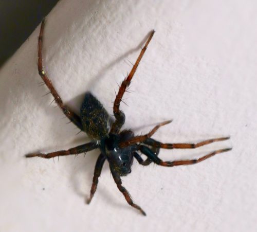 Then she was nice enough to let me snap a few blurry photos before I released her back into the house. She was the first Steatoda triangulosa of the spring, you know.