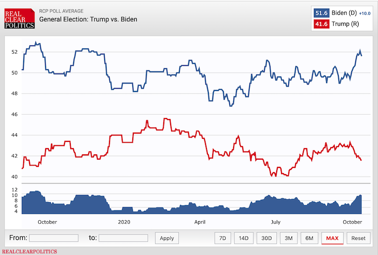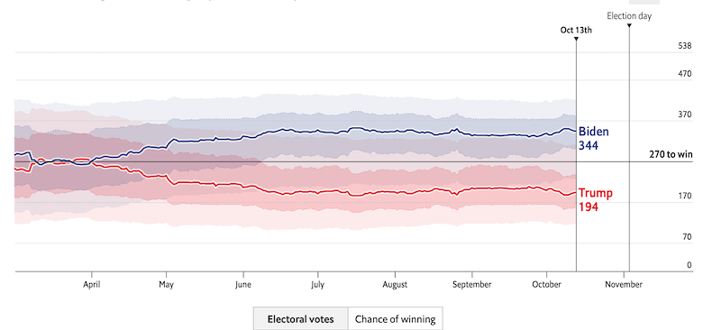 As the election gets closer, people tend to increasingly look for indicators as to what the result might be. This has become more of an art form since the failure of polls to predict Trump’s win in 2016 has made people wary of opinion polls. This problem of polling uncertainty may be accentuated this year because the intensity of the hostility generated by Trump may have resulted in people being more circumspect in revealing their views to pollsters.