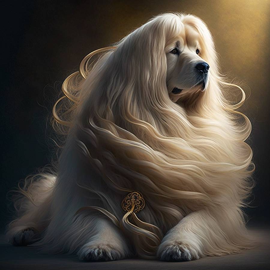 This was a bit odd: I tried to specify “a female afghan hound…” and Midjourney’s stupid content filtering system kicked back that prompt. It’s funny as hell, to me, that this fancy AI that does all this matching and processing, is incapable of content filtering beyond simple keyword matching. Lazy.