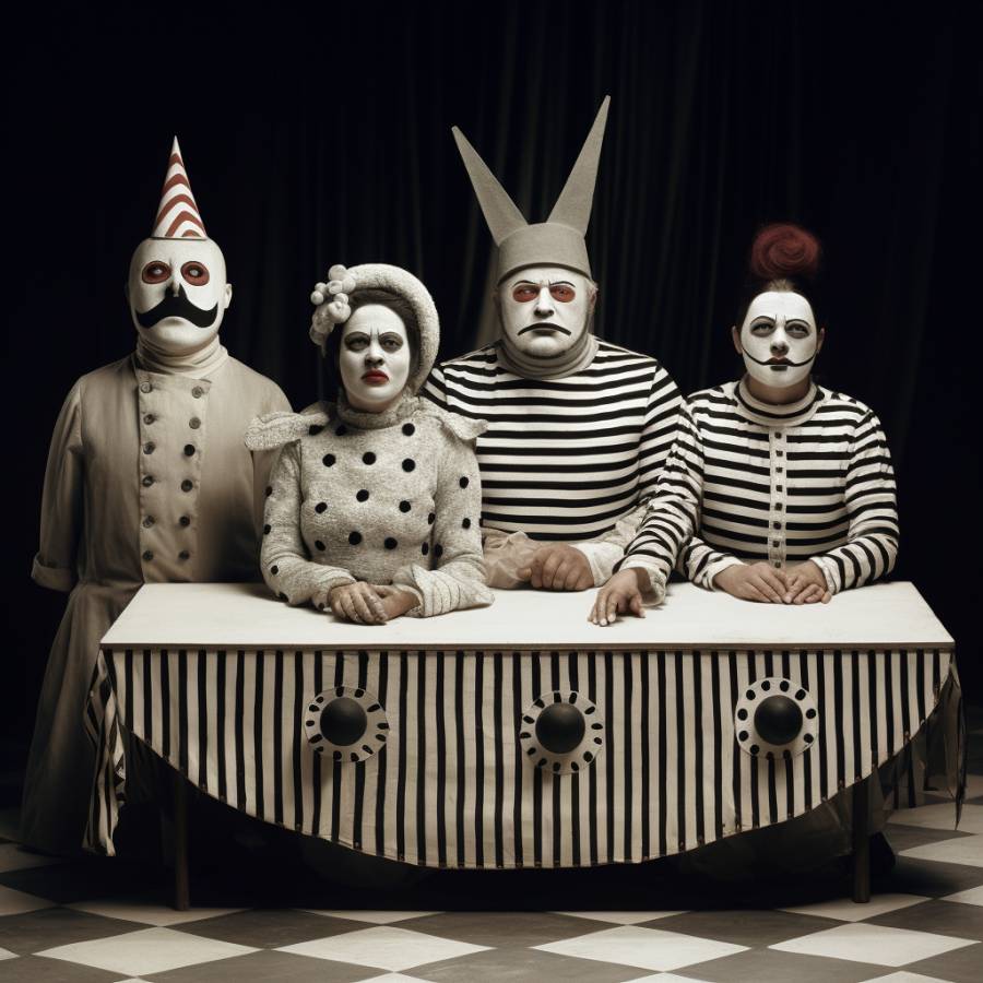 Midjourney AI and mjr “a theatrical performance of Alfred Jarry’s Ubu Roy photographed by Erwin Olaf”