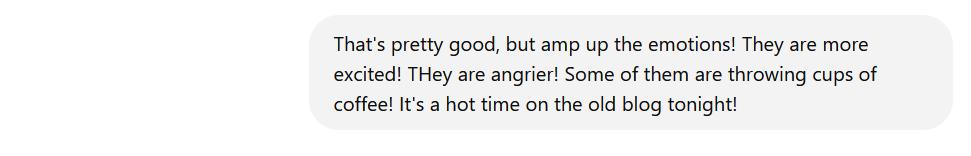 So, the meme’s model is to keep asking the AI for more and more extreme versions of ${whatever}