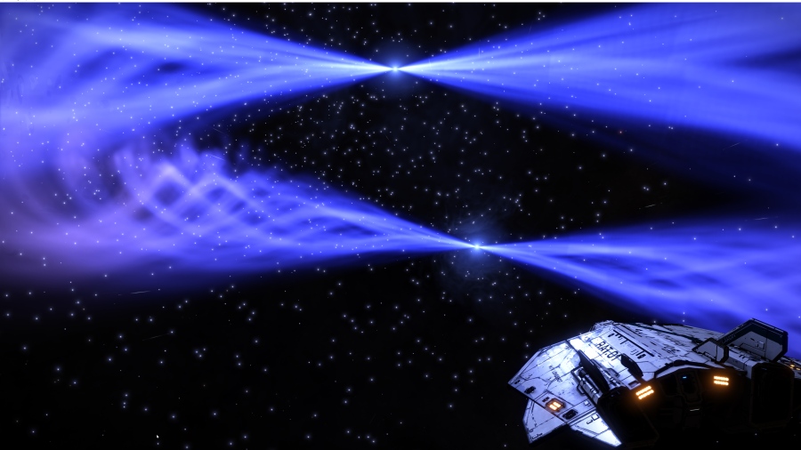 I flew longshot AKA “Rat.01”. Here I am paused, trying to decide if two neutron stars are fun to fly between. I think I chose discretion as the better part of valour.