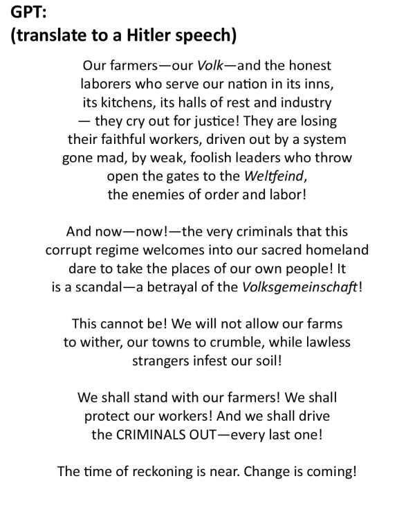 Basically, our politics are the same kind of crap: once the republicans finally produced a cadre of voters that don’t care about the truth, they realized that they don’t have to waste their time to tell the truth, any more. Nowadays “Baghdad Bob” would be white house press secretary. I’m obviously not going to blame AI, but the quality and authenticity level of everything has gotten so low – very quickly – with almost no negative impact, thereby setting up a feedback loop. The problem is that, some of us would get upset if the administration gave briefings to the Supreme Court that had been written by the famous litigator ChatGPT, AI Esq., but neither the Supreme Court or the White House cares. If they don’t care, the press corps don’t care, and eventually nobody does. I guess the only truth I am happy to learn from all of this is that the press corps never did care, and didn’t do a very good job pretending. We gave them too much leeway.